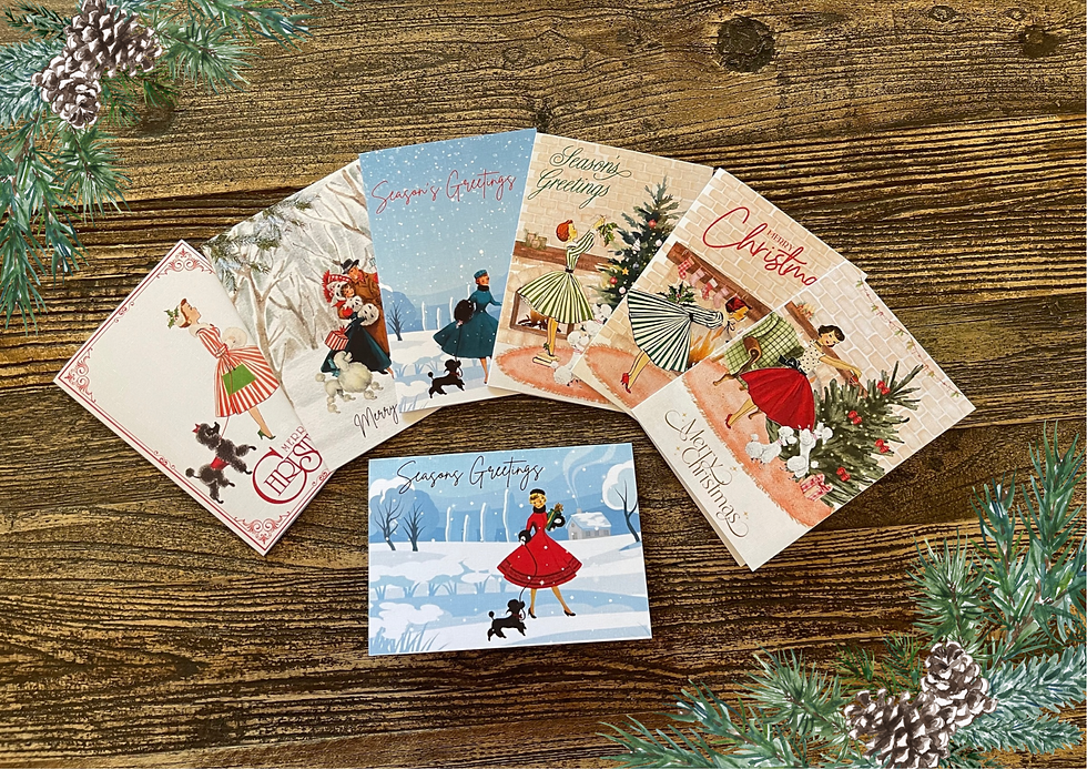 A delightful selection of greeting cards ranging from enchanting soft watercolours through to retro, vintage and modern designs to suit any poodle fan.